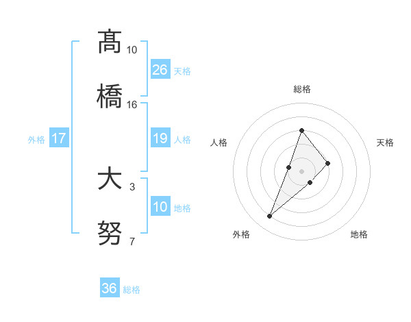 髙橋 大努さんを姓名の画数から五運を鑑定