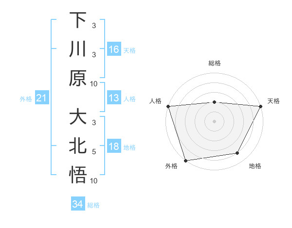 下川原 大北悟さんの人格は13画の5点!