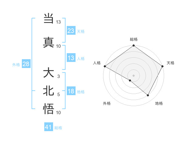 当真 大北悟さんを姓名の画数から五運を鑑定