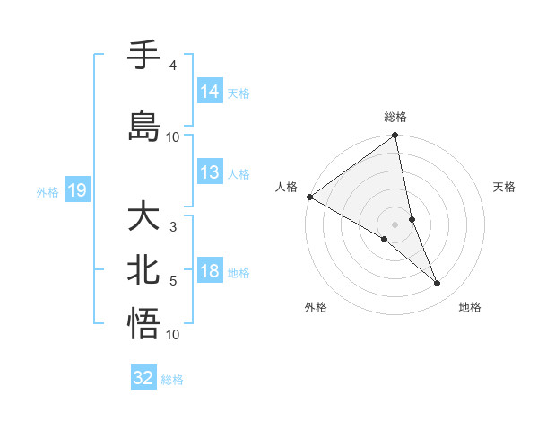 手島 大北悟さんの総格は32画の5点!