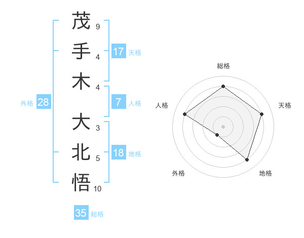 茂手木 大北悟さんを姓名の画数から五運を鑑定