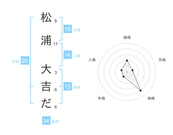 松浦 大吉ださんを姓名の画数から五運を鑑定