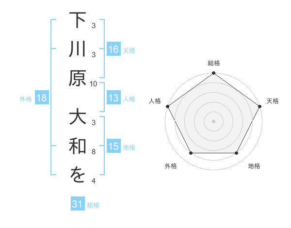 下川原 大和をさんの総格は31画の5点!
