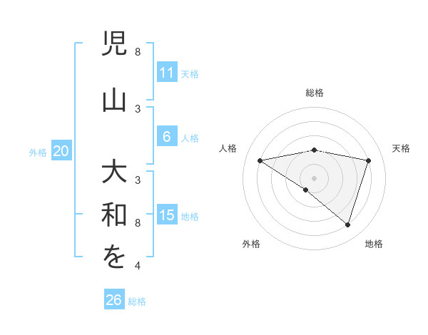 児山 大和をさんの総格は26画の2点!
