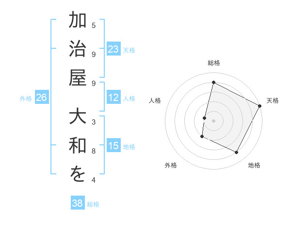 加治屋 大和をさんを姓名の画数から五運を鑑定