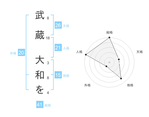 武蔵 大和をさんの地格は15画の4点!