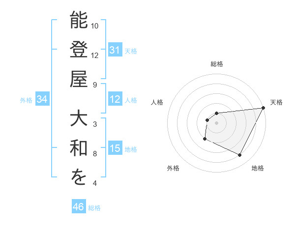 能登屋 大和をさんを姓名の画数から五運を鑑定