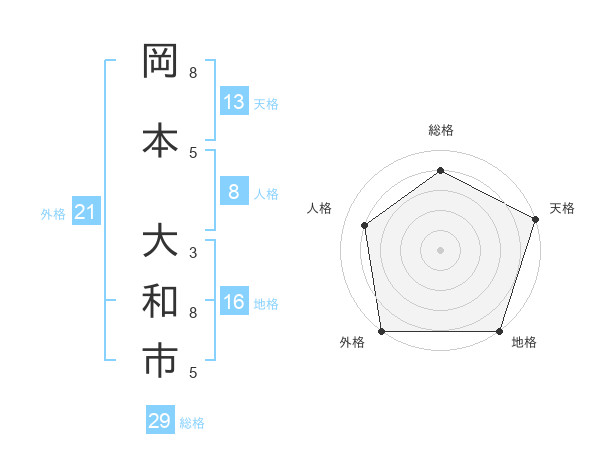 岡本 大和市さんの外格は21画の5点!