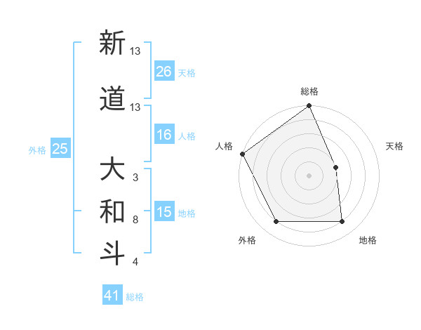 新道 大和斗さんの総格は41画の5点!
