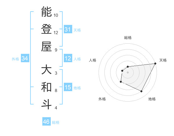 能登屋 大和斗さんを姓名の画数から五運を鑑定