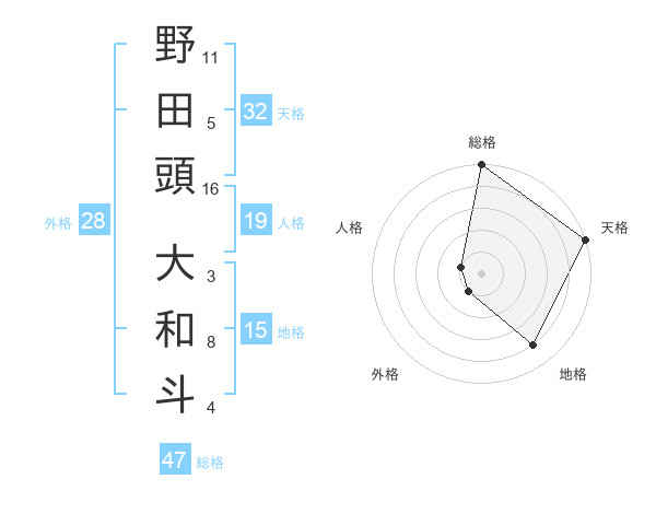 野田頭 大和斗さんを姓名の画数から五運を鑑定
