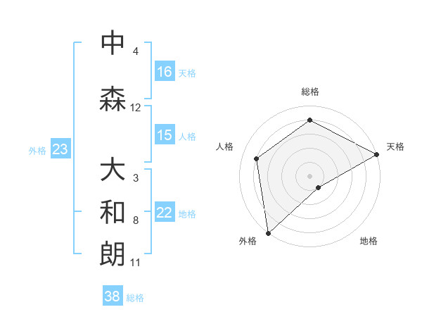 中森 大和朗さんの総格は38画の4点!