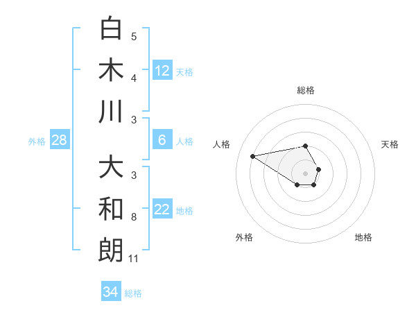 白木川 大和朗さんの総格は34画の2点!