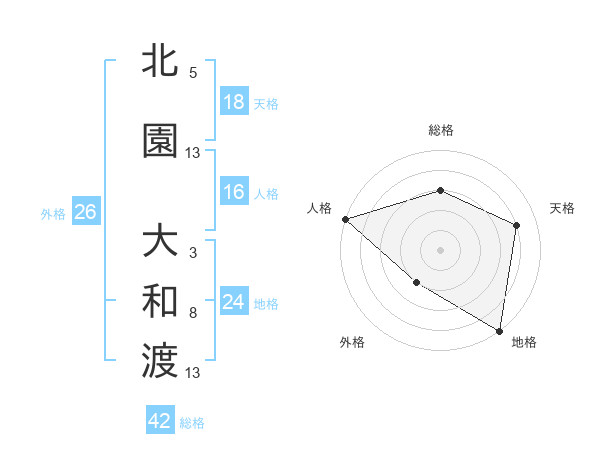 北園 大和渡さんを姓名の画数から五運を鑑定