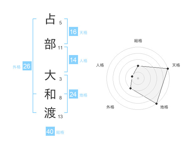 占部 大和渡さんを姓名の画数から五運を鑑定