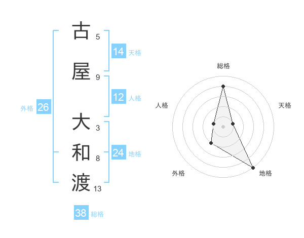 古屋 大和渡さんを姓名の画数から五運を鑑定
