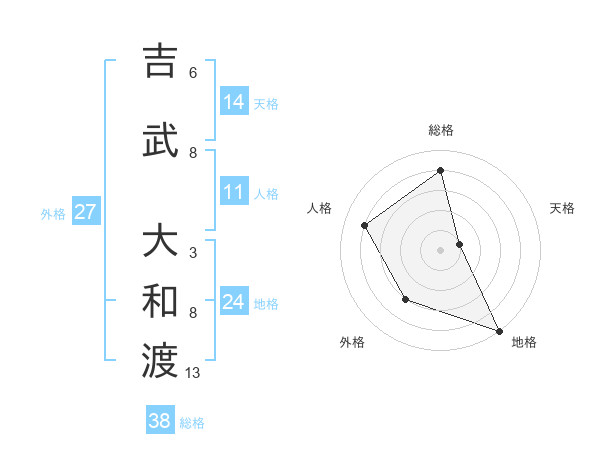 吉武 大和渡さんを姓名の画数から五運を鑑定