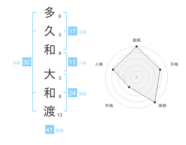 多久和 大和渡さんを姓名の画数から五運を鑑定