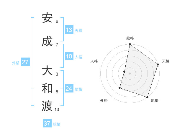 安成 大和渡さんを姓名の画数から五運を鑑定
