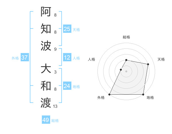 阿知波 大和渡さんを姓名の画数から五運を鑑定