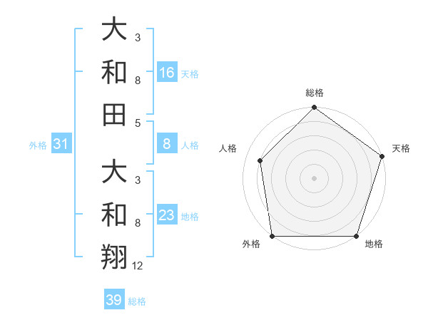 大和田 大和翔さんの総格は39画の5点