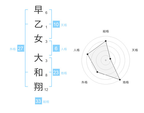 早乙女 大和翔さんの総格は33画の4点!