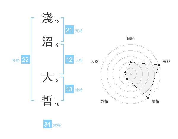 淺沼 大哲さんを姓名の画数から五運を鑑定