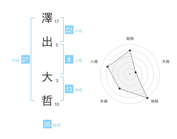 澤出 大哲さんの総格は35画の4点!