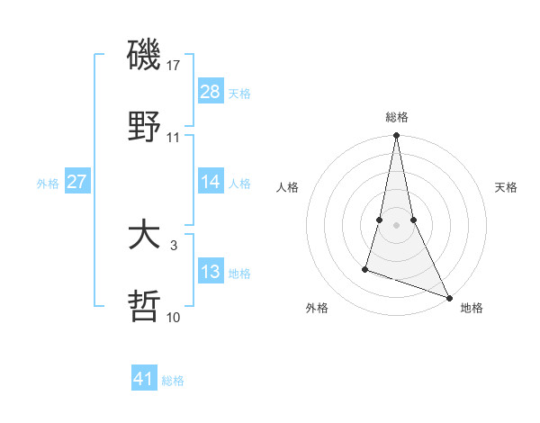 磯野 大哲さんを姓名の画数から五運を鑑定