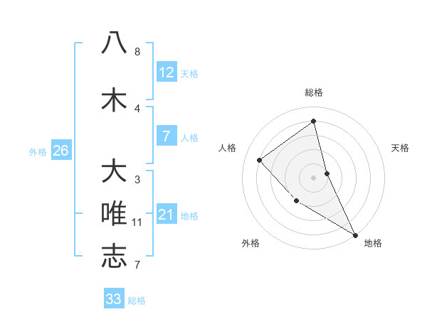 八木 大唯志さんを姓名の画数から五運を鑑定