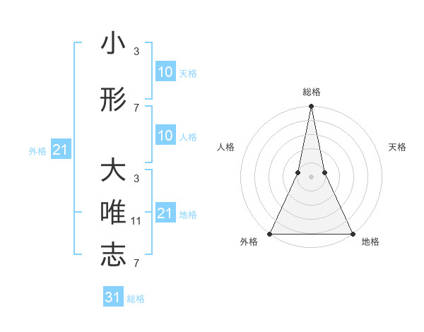 小形 大唯志さんの総格は31画の5点!