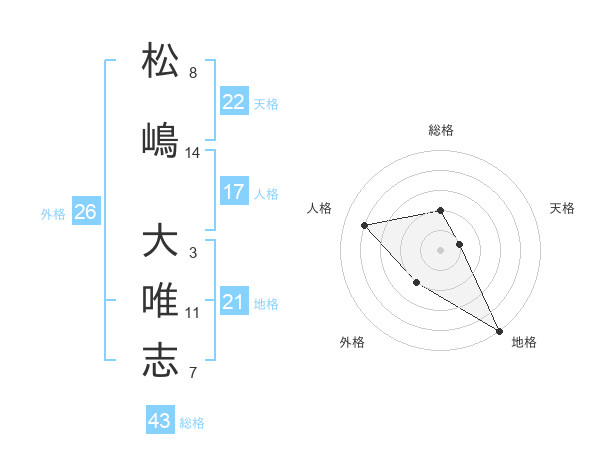 松嶋 大唯志さんを姓名の画数から五運を鑑定