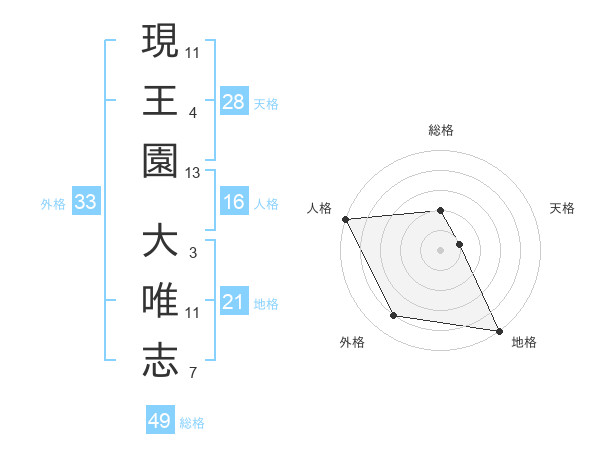 現王園 大唯志さんを姓名の画数から五運を鑑定