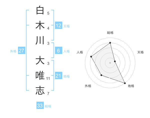 白木川 大唯志さんの総格は33画の4点!