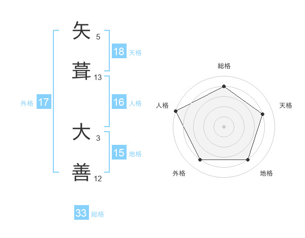 矢葺 大善さんを姓名の画数から五運を鑑定