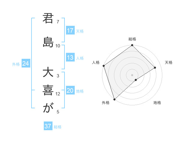 君島 大喜がさんの総格は37画の5点!