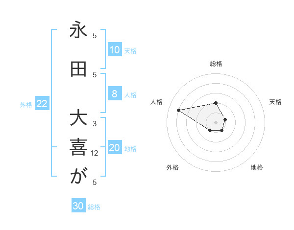 永田 大喜がさんを姓名の画数から五運を鑑定