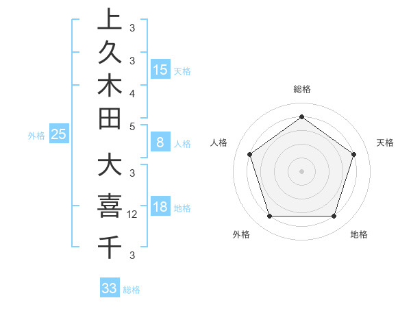 上久木田 大喜千さんを姓名の画数から五運を鑑定