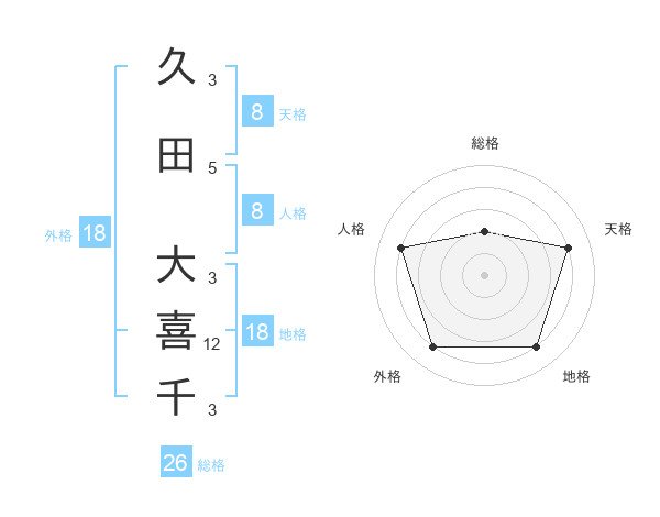 久田 大喜千さんを姓名の画数から五運を鑑定