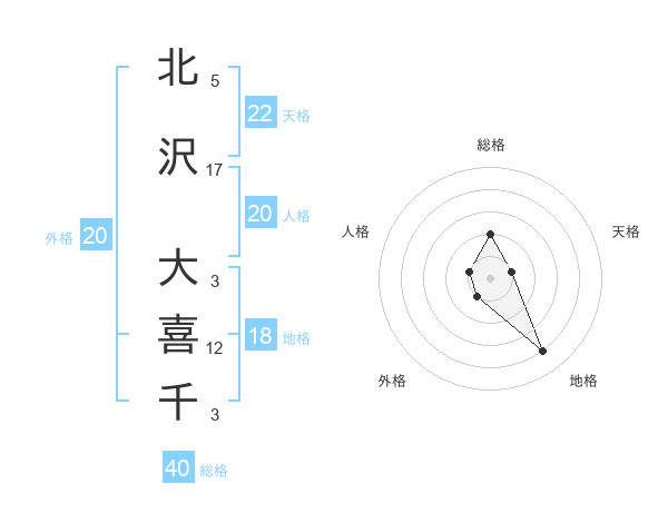 北沢 大喜千さんを姓名の画数から五運を鑑定
