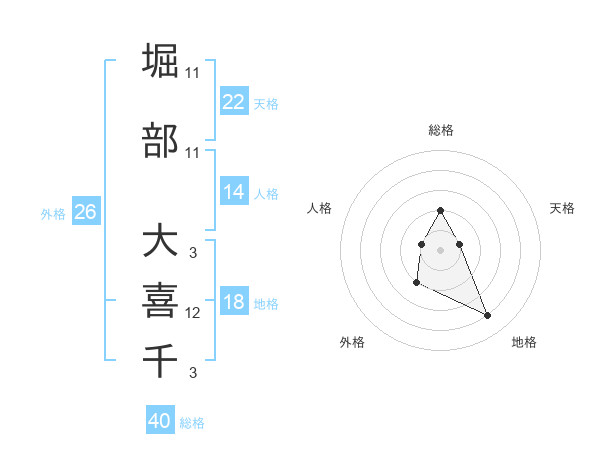 堀部 大喜千さんを姓名の画数から五運を鑑定