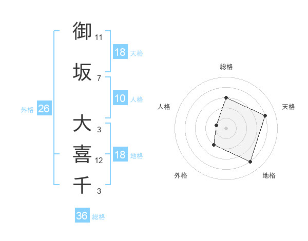 御坂 大喜千さんの総格は36画の3点