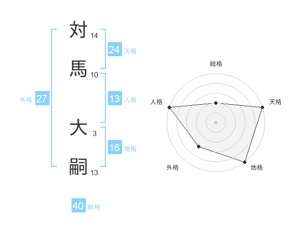 対馬 大嗣さんの天格は24画の5点
