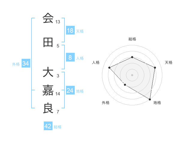 会田 大嘉良さんの総格は42画の3点!