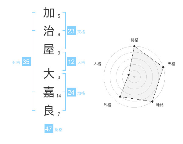 加治屋 大嘉良さんを姓名の画数から五運を鑑定