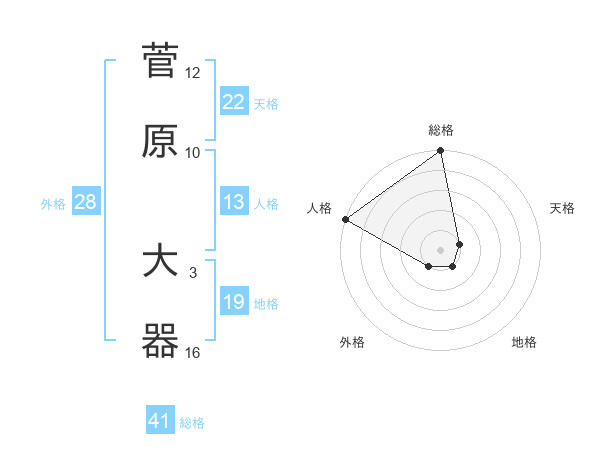 菅原 大器さんの天格は22画の1点!