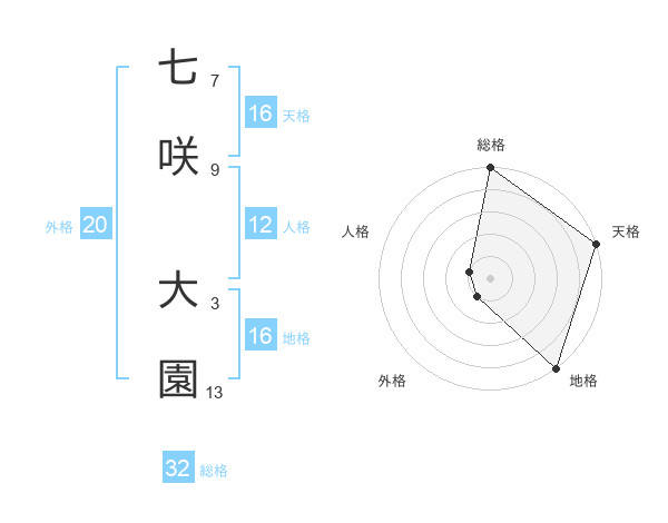 七咲 大園さんの天格は16画の5点!
