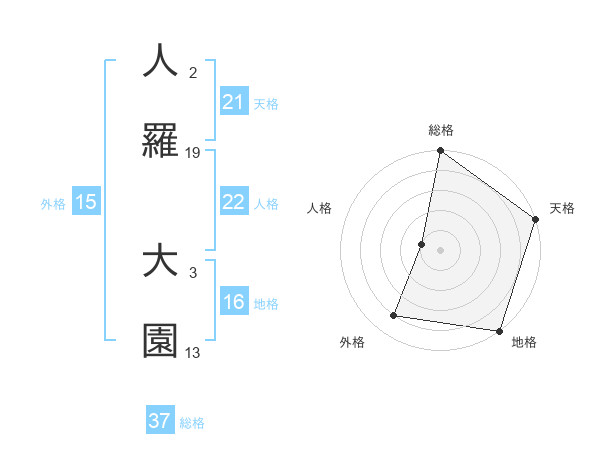 人羅 大園さんの総格は37画の5点!