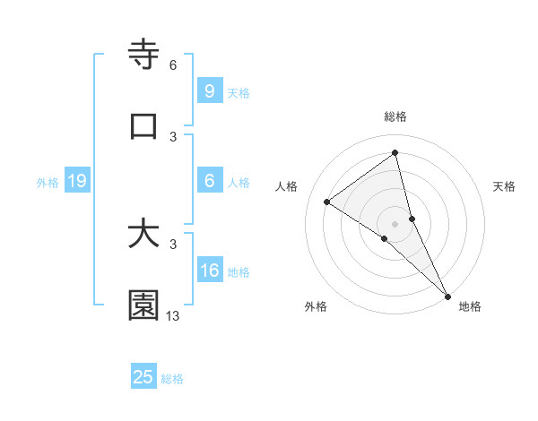 寺口 大園さんの総格は25画の4点!