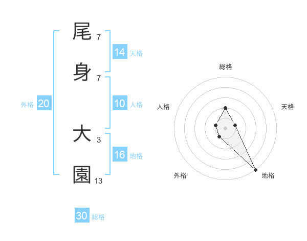 尾身 大園さんの天格は14画の1点!